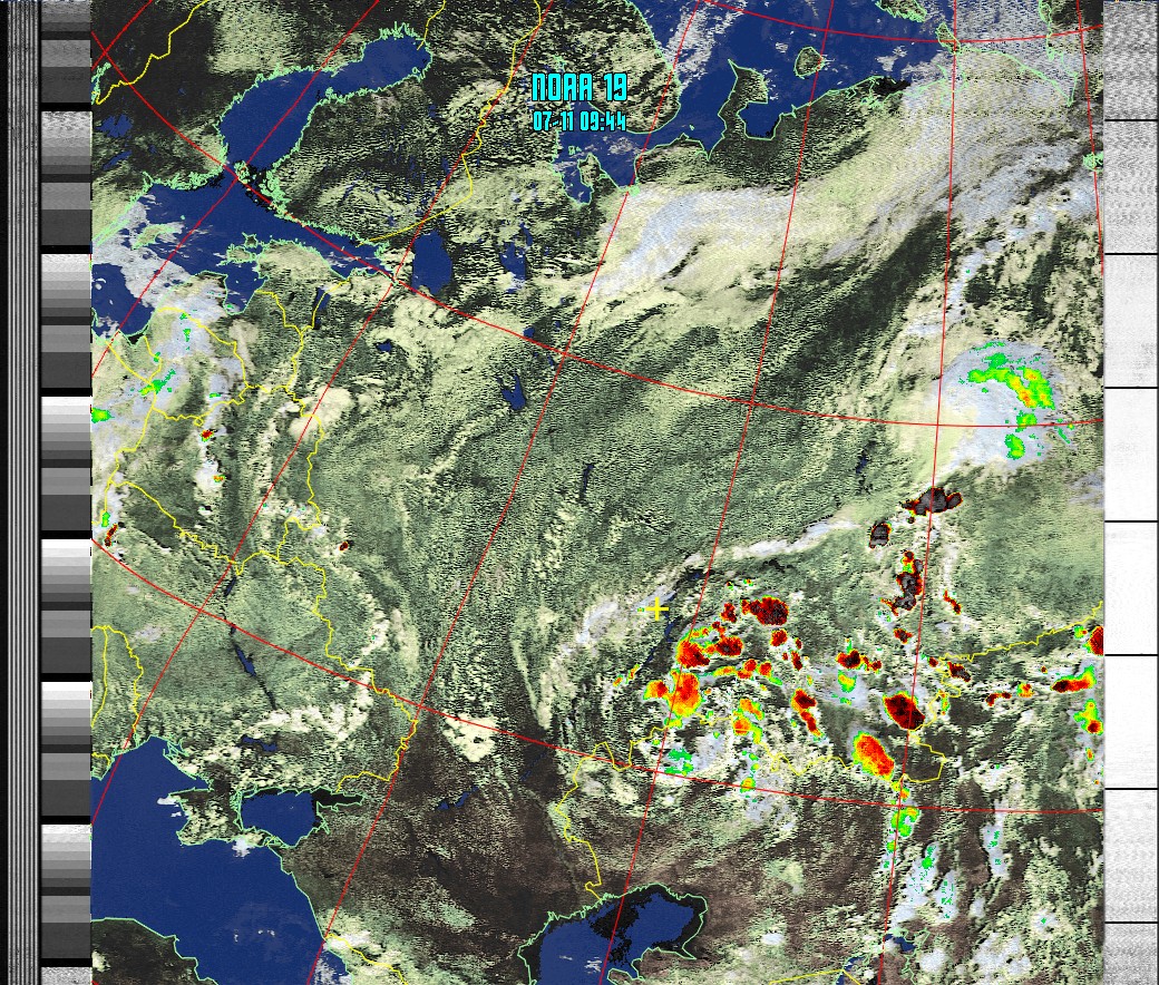 NOAA-19 (HVCT with precepitation) Мультиспектральный анализ с областями метеорологической активности