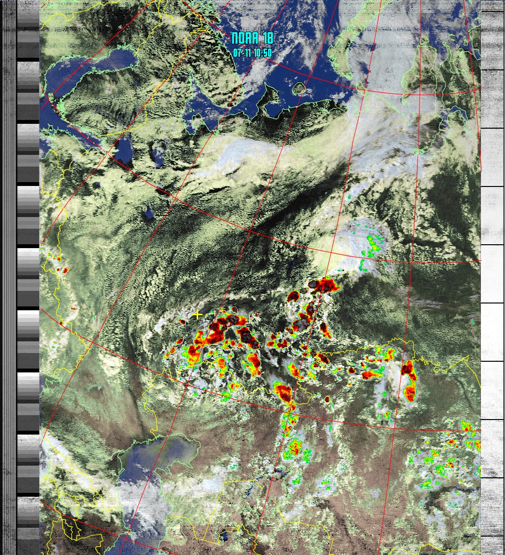 NOAA-18 (HVCT with precepitation) Анализ облачности с областями метеорологической активности