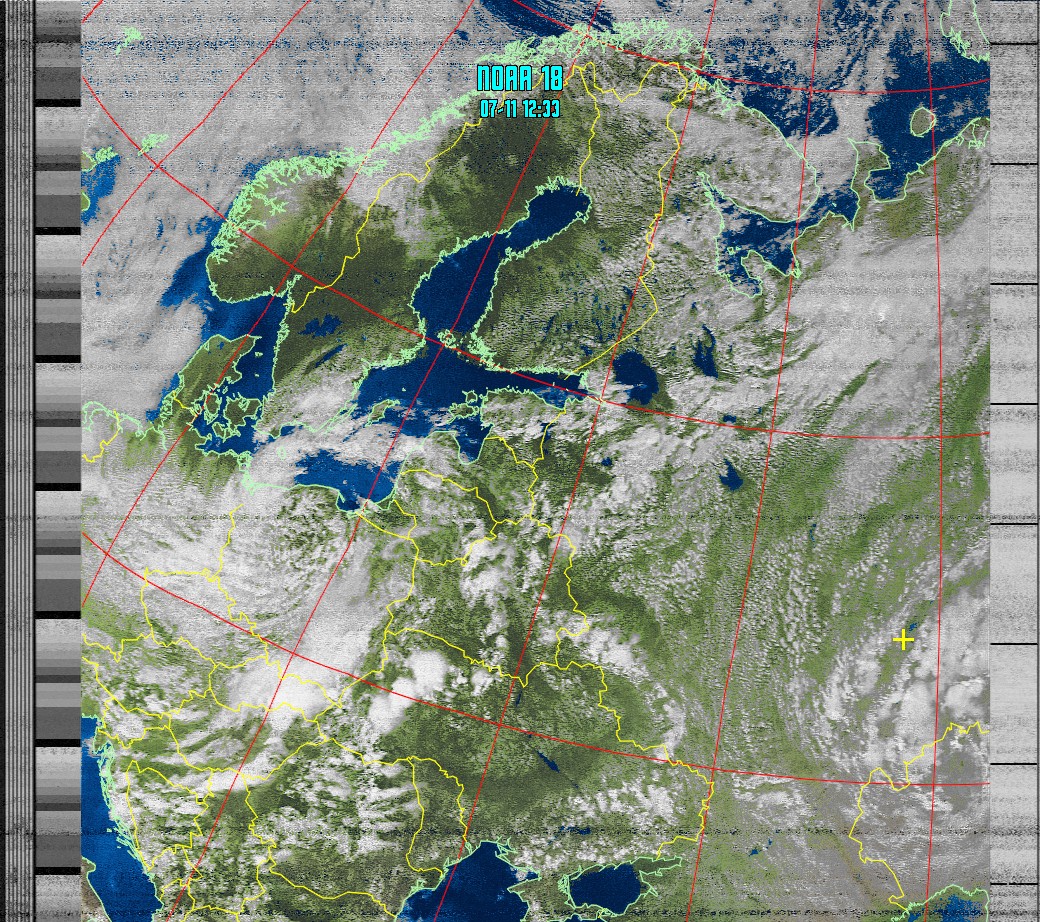 NOAA-18 (MSA with precipitaztion) Мультиспектральный анализ с областями метеорологической активности