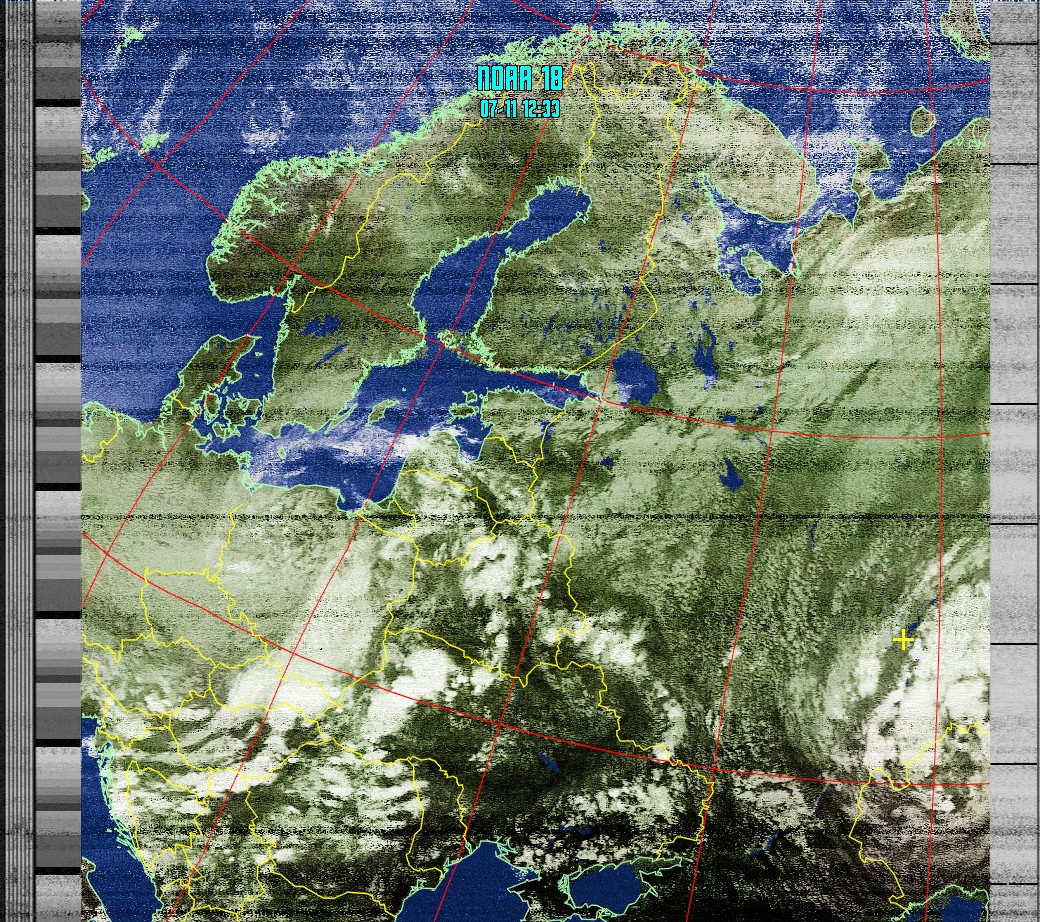 NOAA-18 (MCIR with precipitaztion) Анализ облачности с областями метеорологической активности