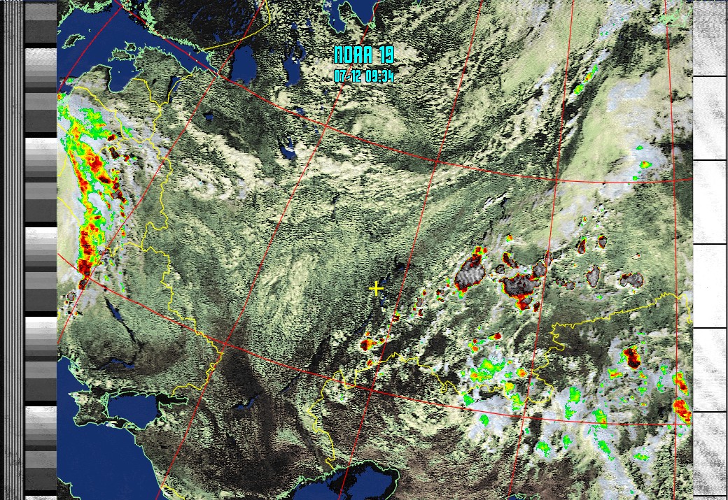NOAA-19 (HCVT with precipitation) Анализ облачности с областями метеоактивности
