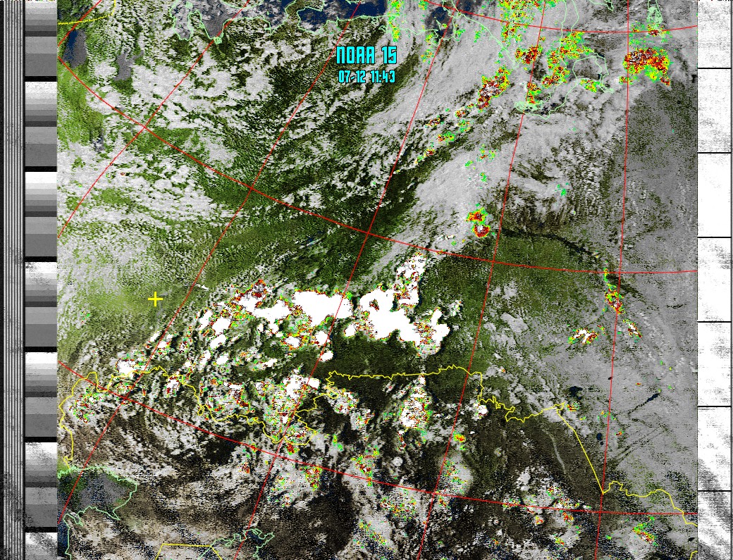 NOAA-15 (MSA with precipitation) Мультиспектральный анализ облачности с областями метеоактивности
