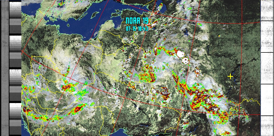NOAA-19 (HVCT with precipitation) Анализ облачности с областями метеоактивности.