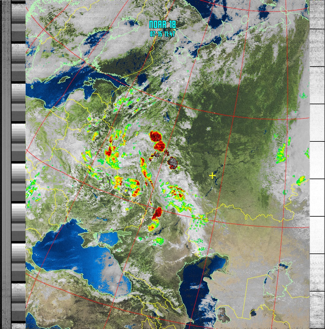 NOAA-18 (MSA with precipitation) Мультиспектральный анализ с областями метеоактивности.