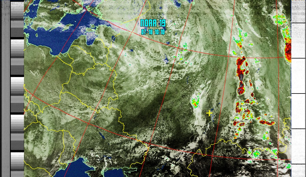 NOAA-19 (MICR with precipitation) Анализ облачности с областями метеоактивности