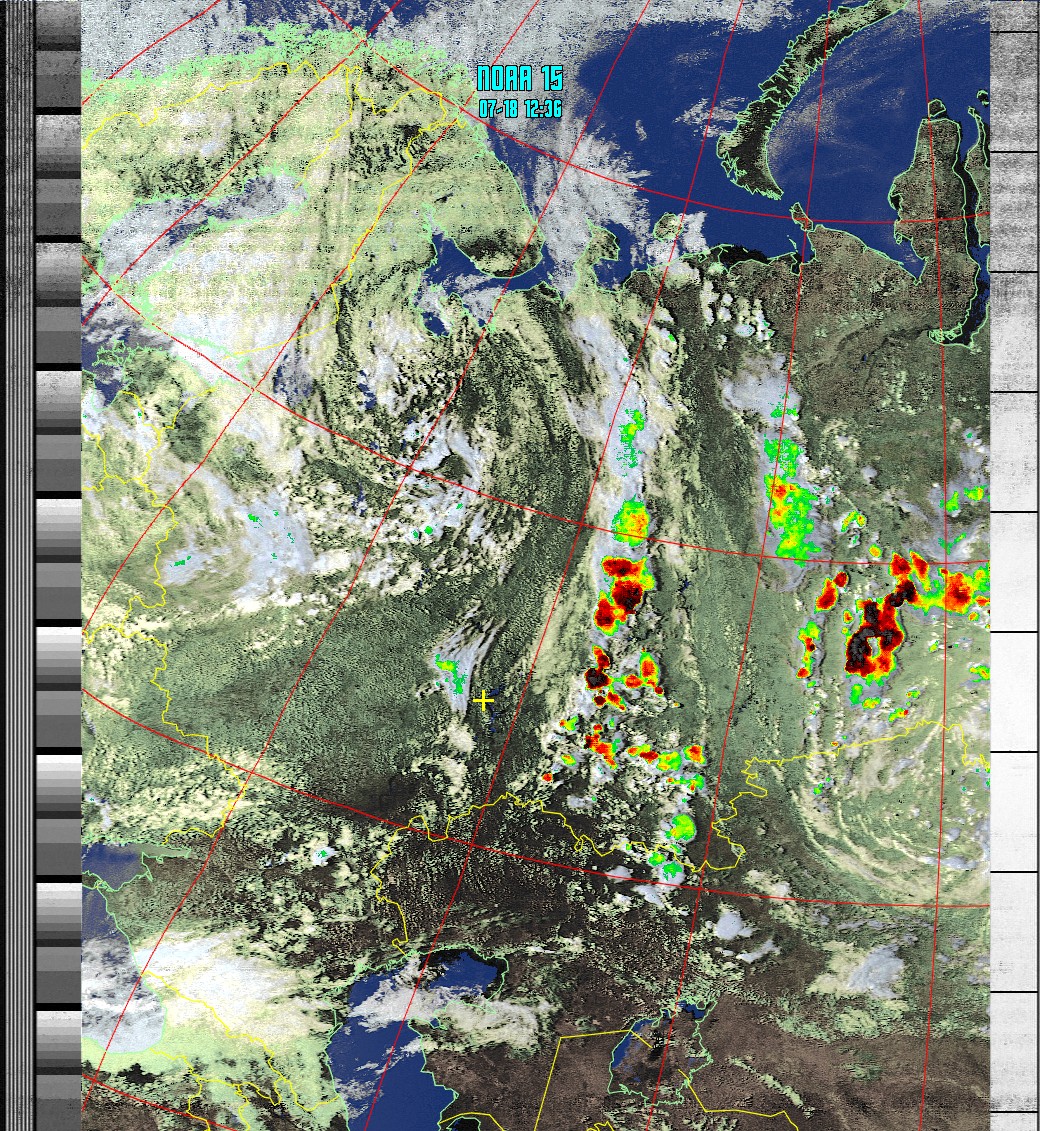 NOAA-15 (HVCT with precipitation) Анализ облачности с областями метеоактивности
