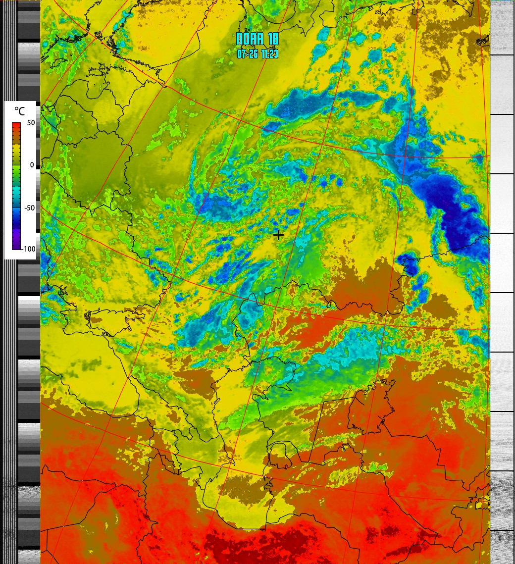 Температура подстилающей поверхности. Часть изображения с наименьшим шумом.