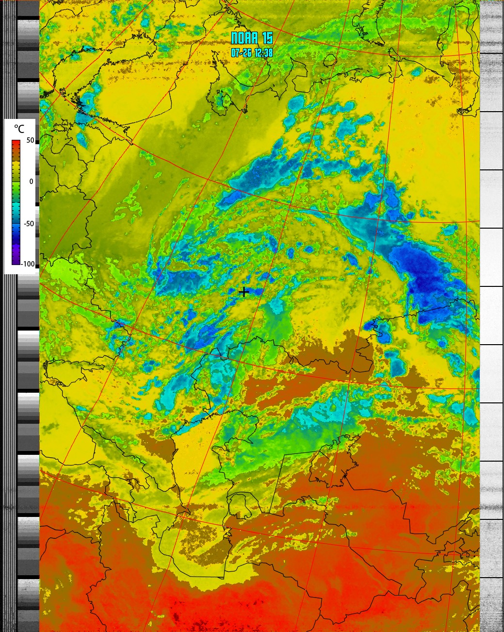 Температура подстилающей поверхности. Часть снимка с наименьшим шумом.