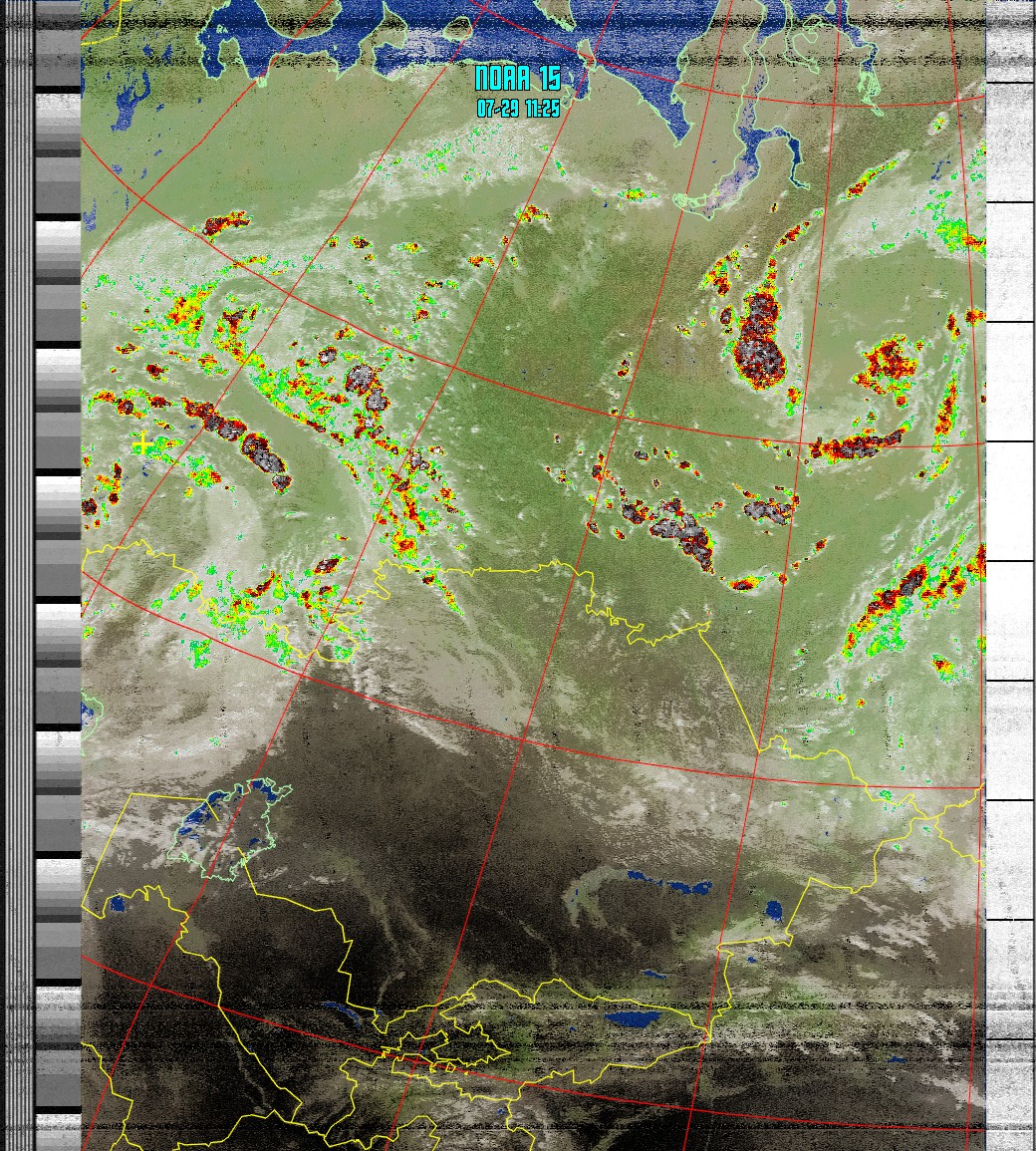 NOAA-15 (MCIR with precipitation ) Анализ облачности с областями метеоактивности