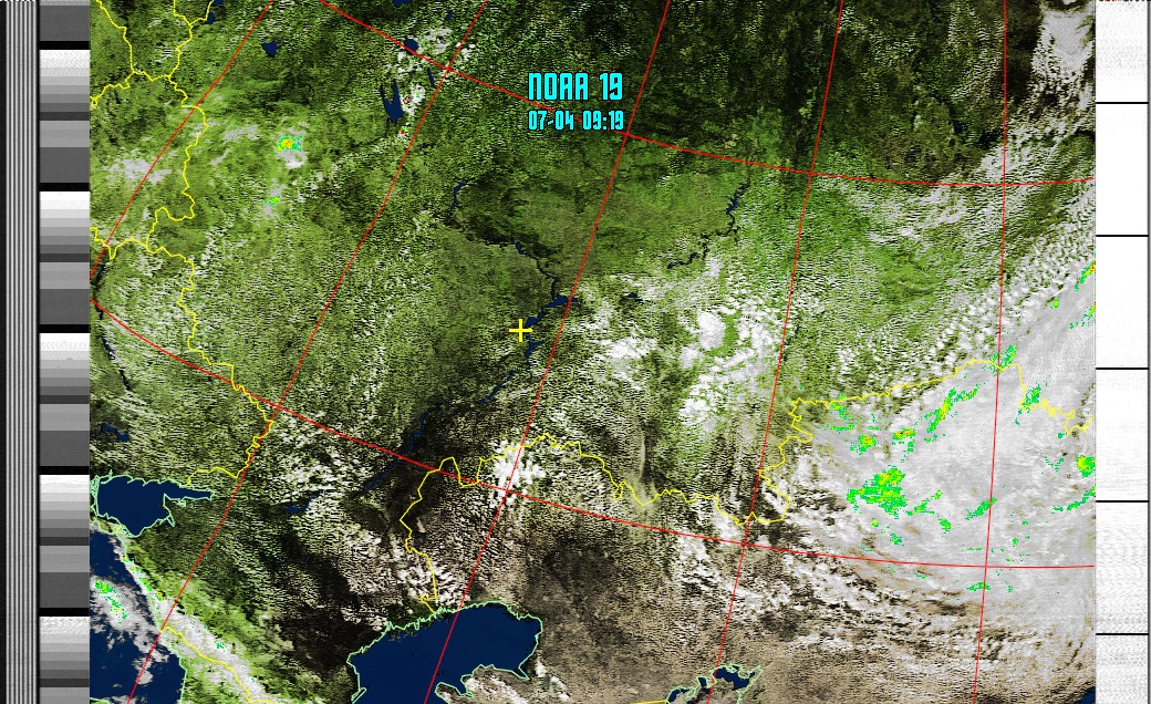 NOAA-19 Композитное изображение (Мультиспектральный анализ) Часть изображения без помех.