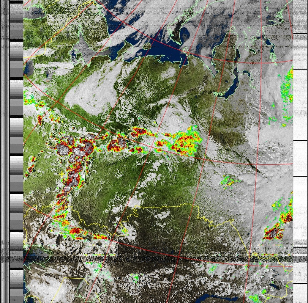 NOAA-15 (MSA with precipitation) Мультиспектральный анализ с областями метеорологической активности
