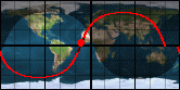 3. Оцениваем угол между направлением на Юг и перпендикуляром к проекции орбиты (по карте): Аз кульм ~20°