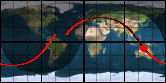 И, наконец, 11 января она проходит перед Солнцем (рис. справа) на удалении около 5° и на минимальном расстоянии от Земли (см. орбиты в плане на рис. внизу), повернувшись к нам задом, простите, - теневой стороной и узким сверкающим серпом. Её видимый размер за 2 месяца возрос более чем вдвое: с 30" до 64" (см. врезки вверху).