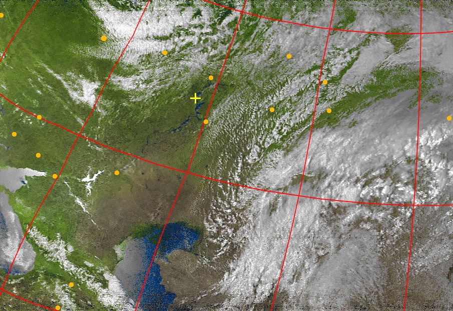 Над Ульяновском плотных облаков нет на фотографии, а из окна небольшая облачность видна. Правда, временная разница 1 час. У меня на компьютере выставлено время с запаздыванием на час. Сейчас московское время 17.39.