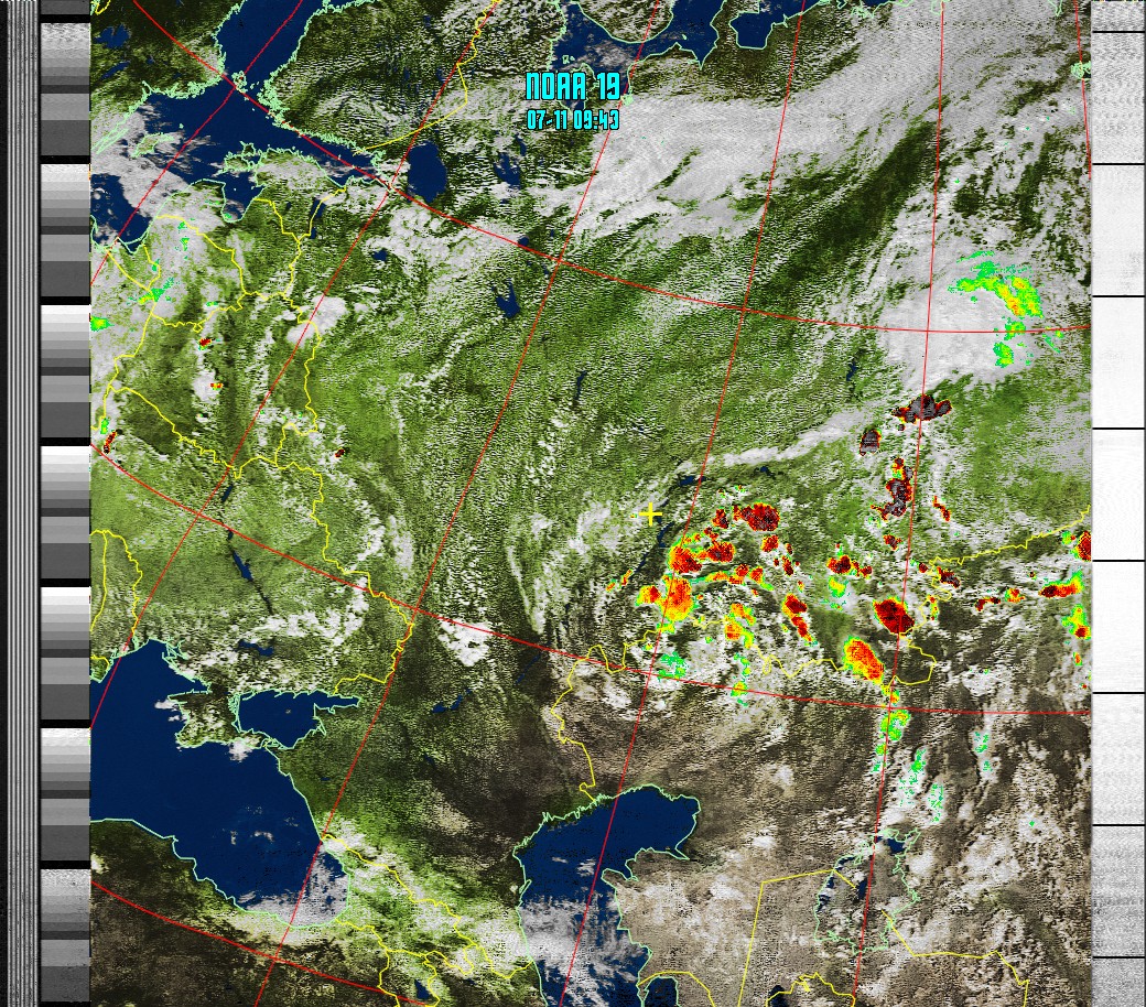 NOAA-19 (MSA with precepitation) Мультиспектральный анализ с областями метеорологической активности