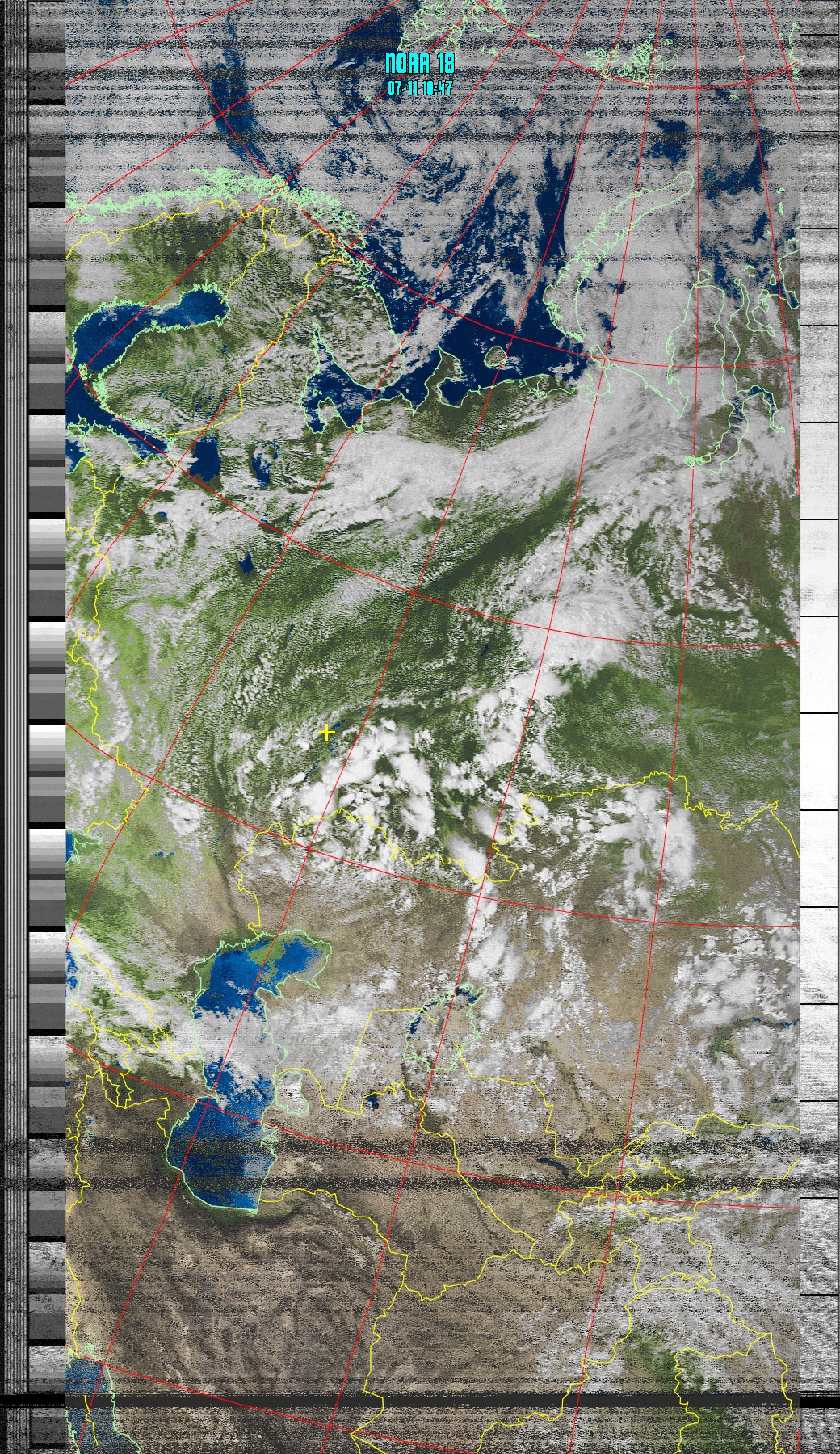 NOAA-18 (MSA) Мультиспектральный анализ с областями метеорологической активности
