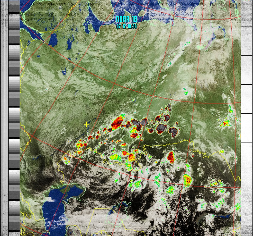 NOAA-18 (MICR with precipitation) Анализ облачности с областями метеоактивности