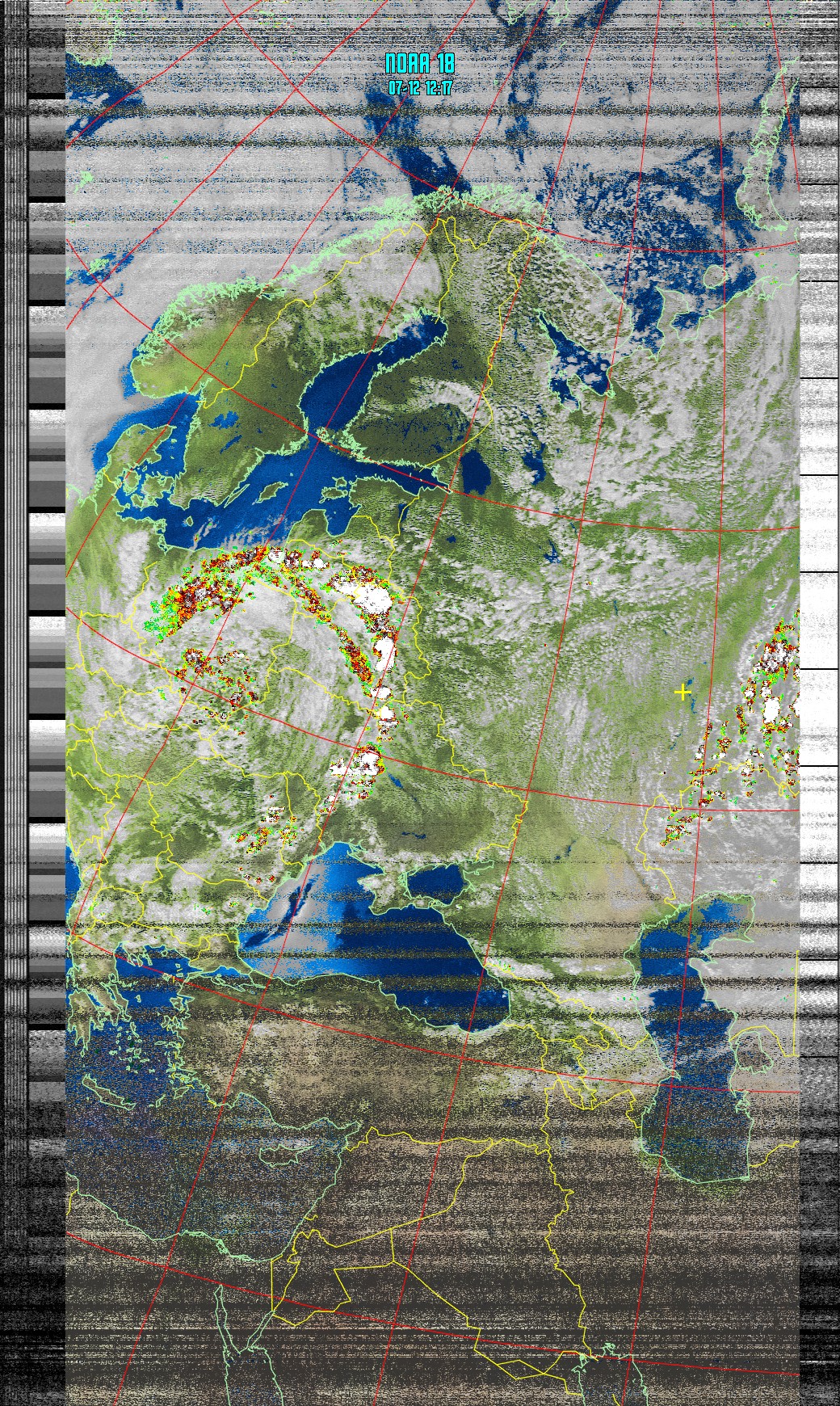 NOAA-18 (MSA with precipitation) Мультиспектральный анализ облачности с областями метеоактивности