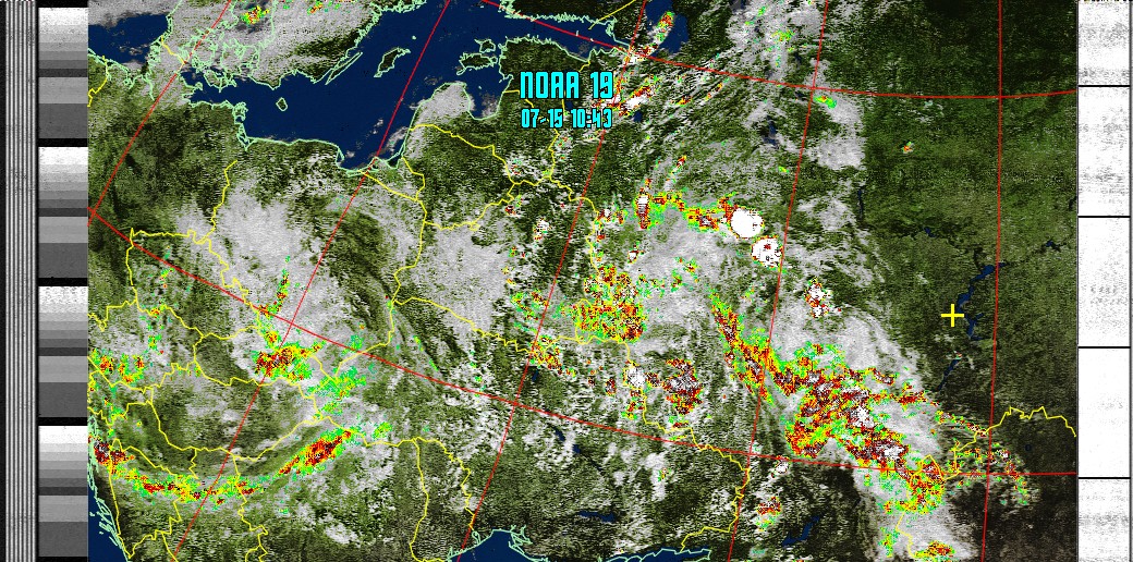 NOAA-19 (MSA with precipitation) Мультиспектральный анализ с областями метеоактивности.