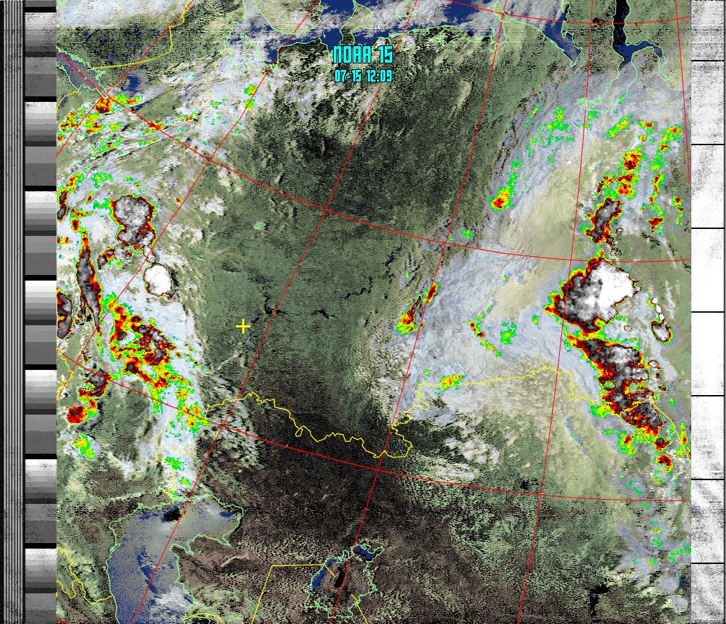 NOAA-15 (HVCT with precipitation) Анализ облачности с областями метеоактивности.