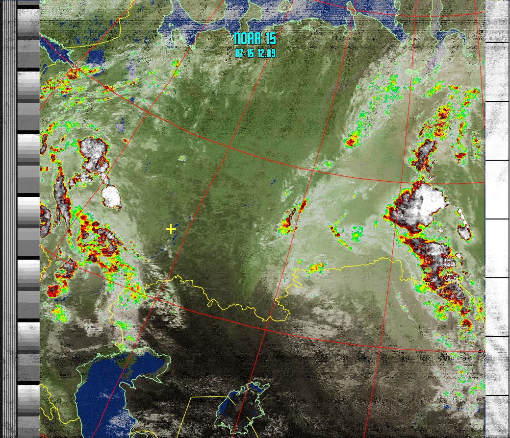 NOAA-15 (MICR with precipitation) Анализ облачности с областями метеоактивности.