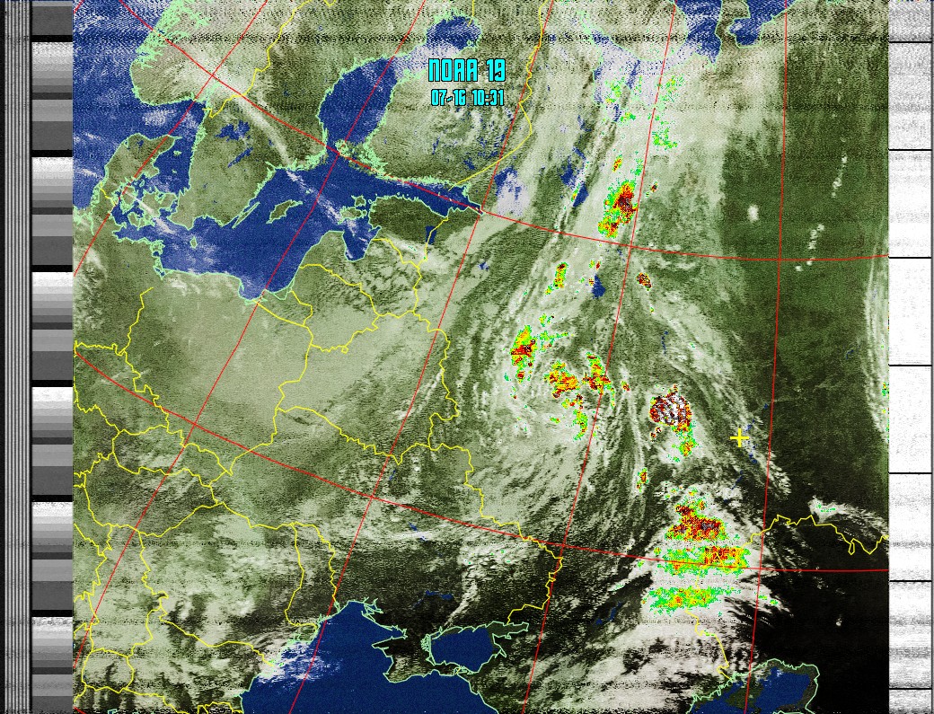 NOAA-19 (MICR with precipitation) Анализ облачности с областями метеоактивности