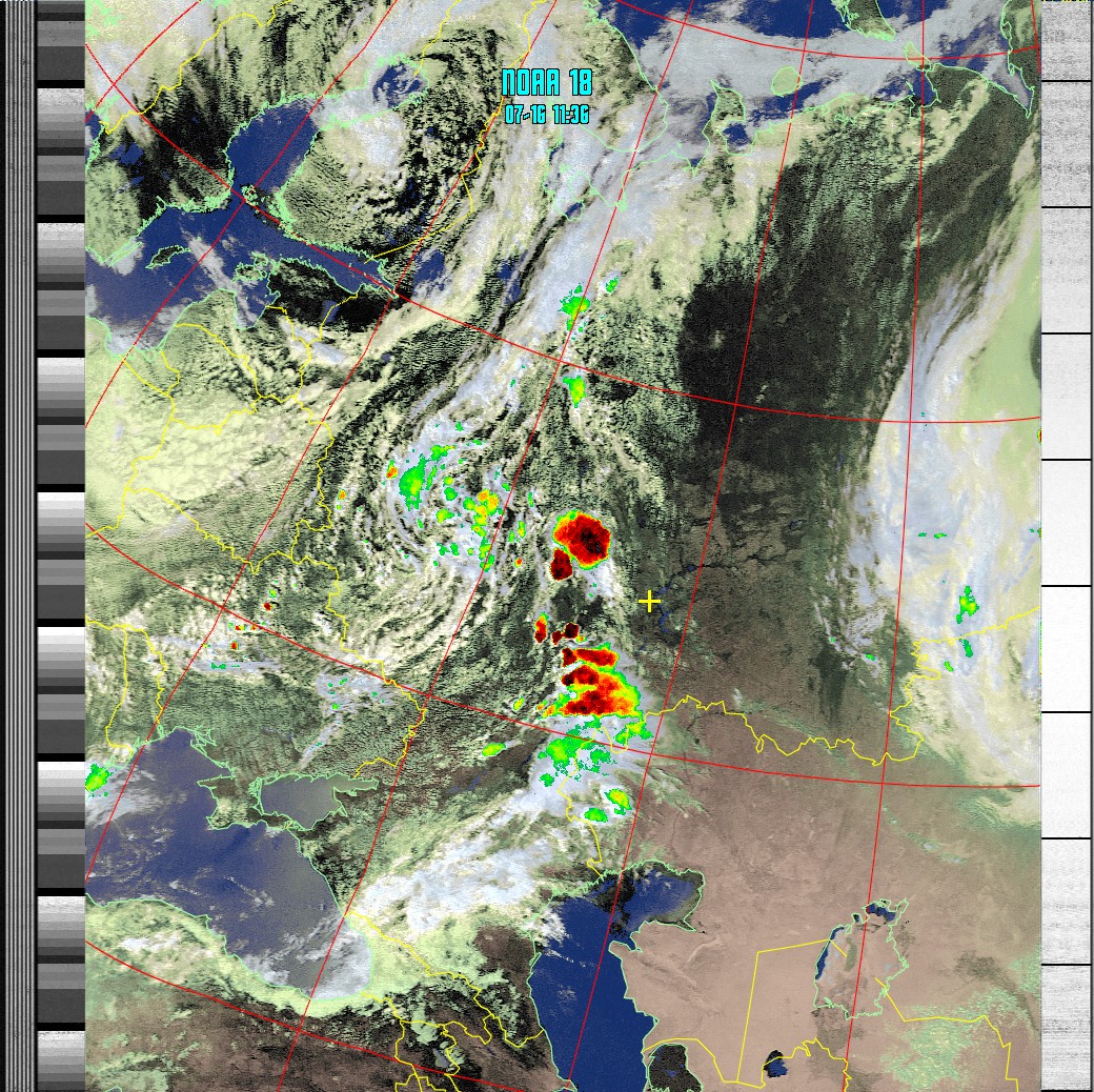 NOAA-18 (HVCT with precipitation) Анализ облачности с областями метеоактивности