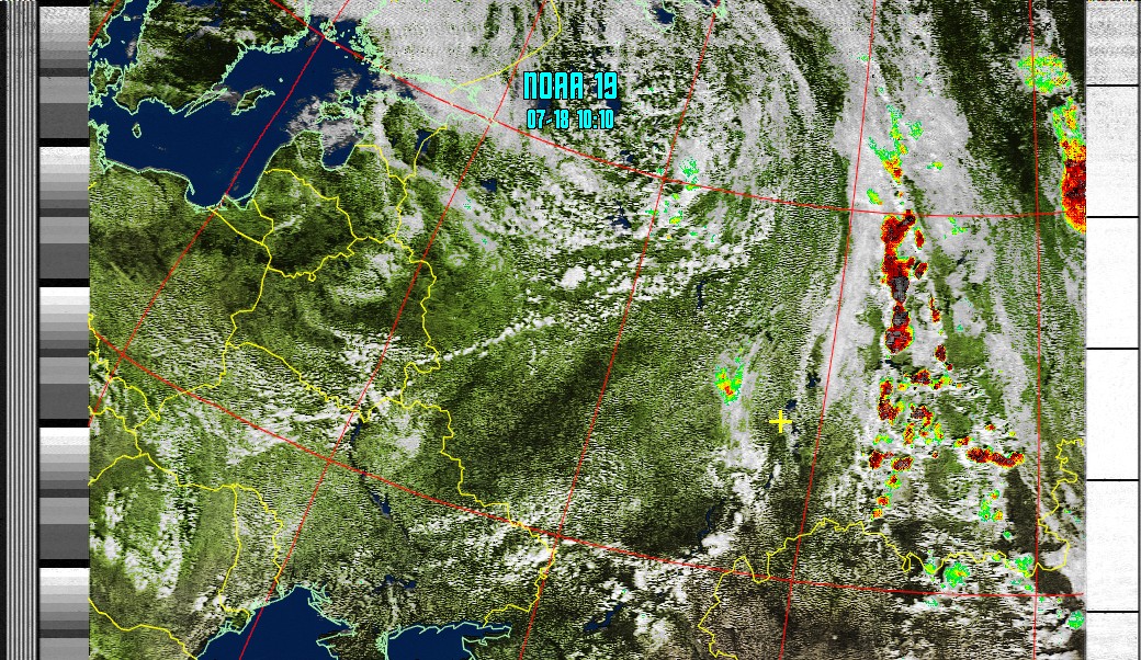 NOAA-19 (MSA with precipitation) Мультиспектральный анализ с областями метеоактивности