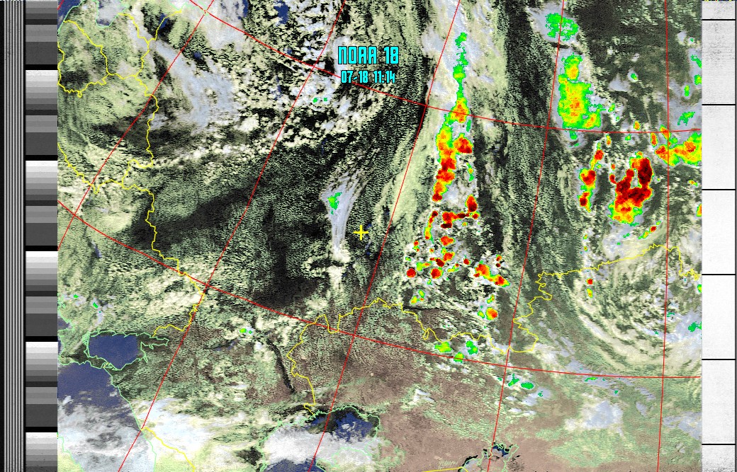 NOAA-18 (HCVT with precipitation) Анализ облачности с областями метеоактивности