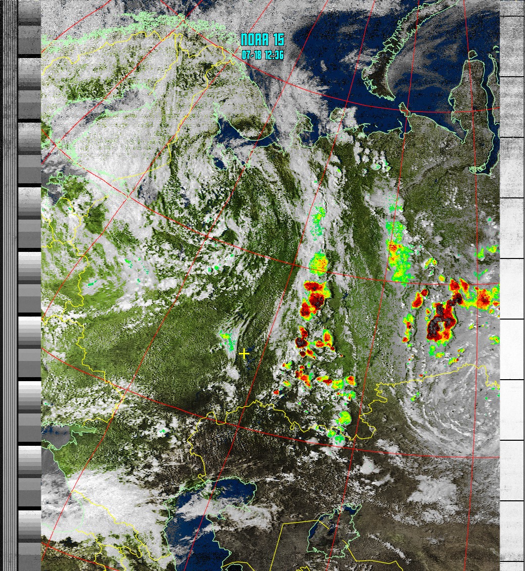 NOAA-15 (MSA with precipitation) Мультиспектральный анализ с областями метеоактивности