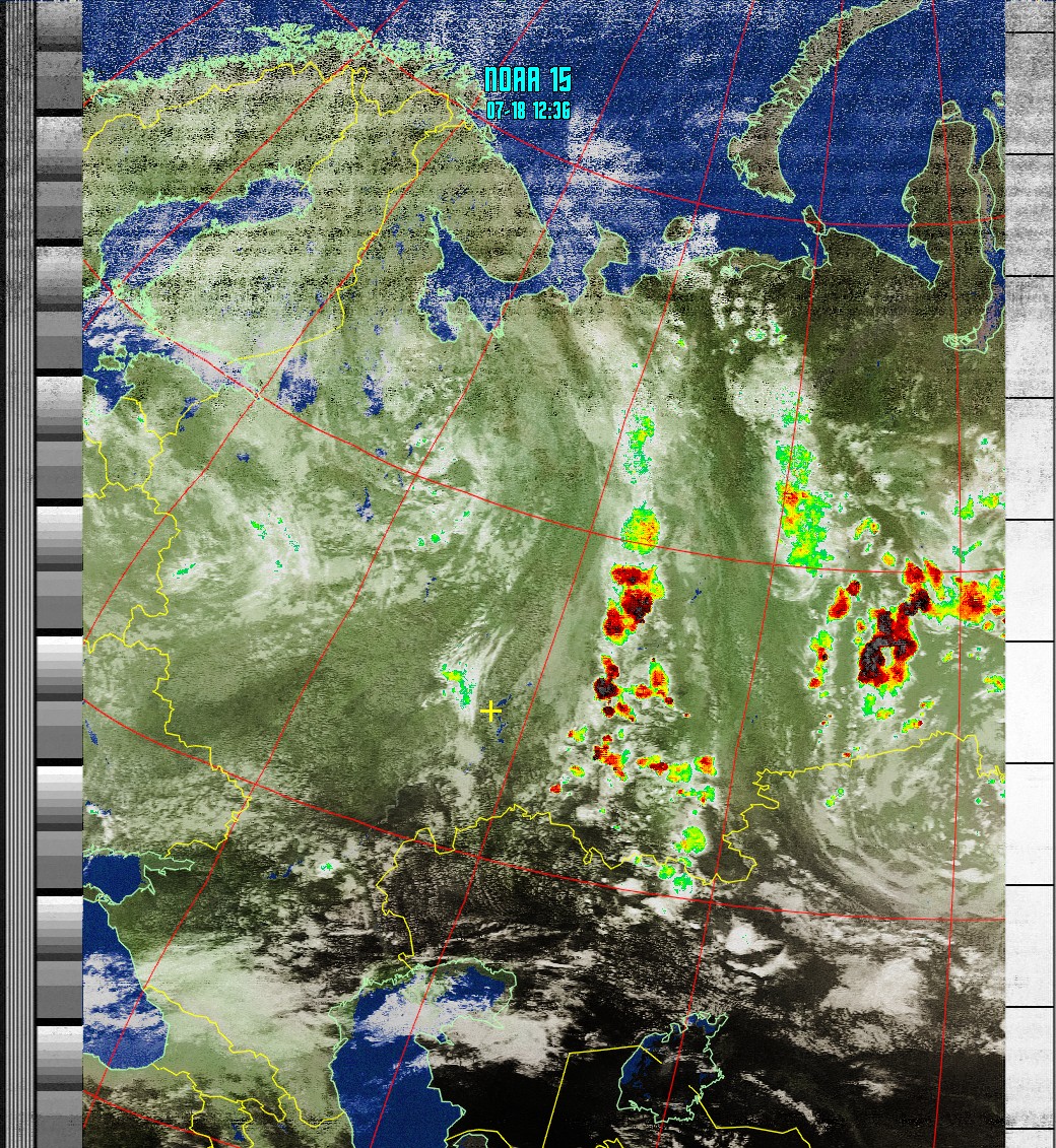 NOAA-15 (MICR with precipitation) Анализ облачности с областями метеоактивности