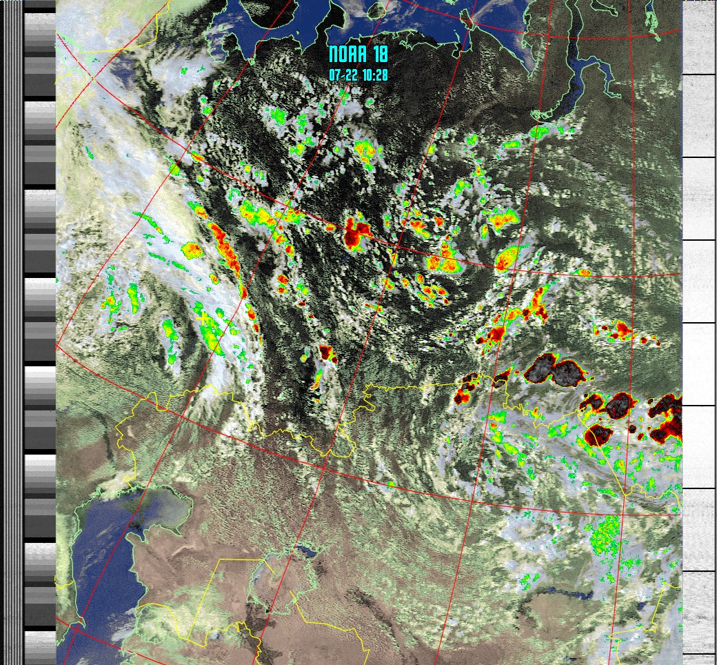 NOAA-18 (HVCT with precipitation) Анализ облачности с областями метеоактивности