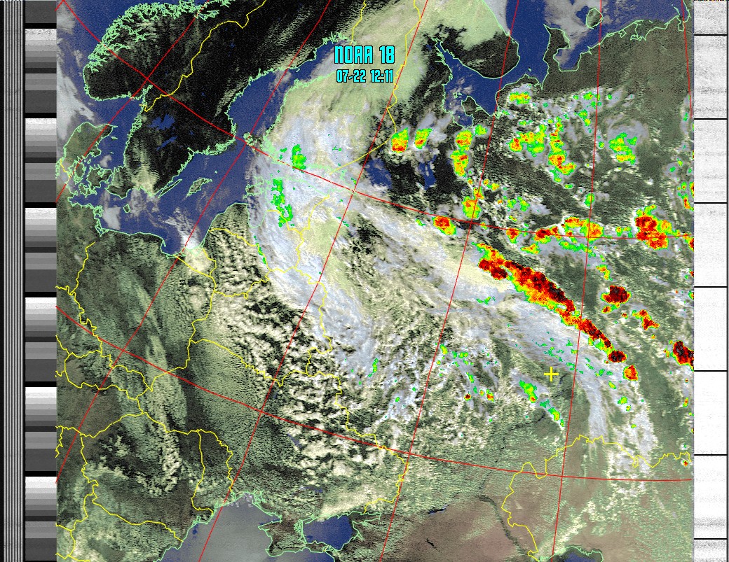 NOAA-18 (HVCT with precipitation) Анализ облачности с областями метеоактивности