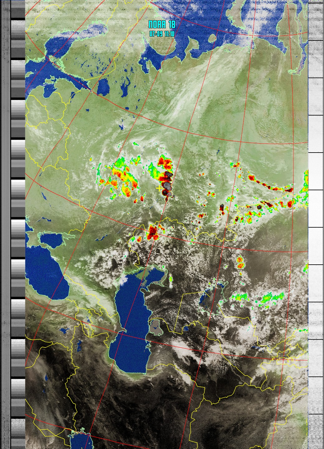 NOAA-18 (MCIR with precipitation) Анализ облачности с областями метеорологической активности