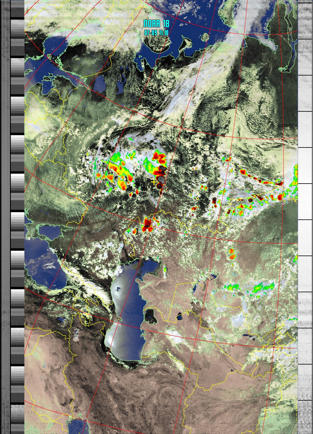 NOAA-18 (HVCT with precipitation) Анализ облачности с областями метеорологической активности