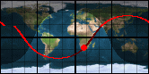 На карте наиболее яркая часть светового пятна условно изображена красным овалом, а трасса движения его центра - красной вертикальной линией. Горизонтальная черта отмечает расчётную координату, которую пересекает луч в указанный момент. Луч с космической (орбитальной) скоростью около 7 км/сек (на карте это - приблизительно размер изображённого овала за секунду) движется на юг. Наблюдатели, попавшие в своё время в этот овал, видят все стадии этой вспышки. Её яркость восточнее и западнее овала плавно уменьшается от максимальной в центре овала ( - 7.4 зв.вел.). В данном пролёте, я думаю, и на расстоянии ближнего Заволжья она уменьшится незначительно.