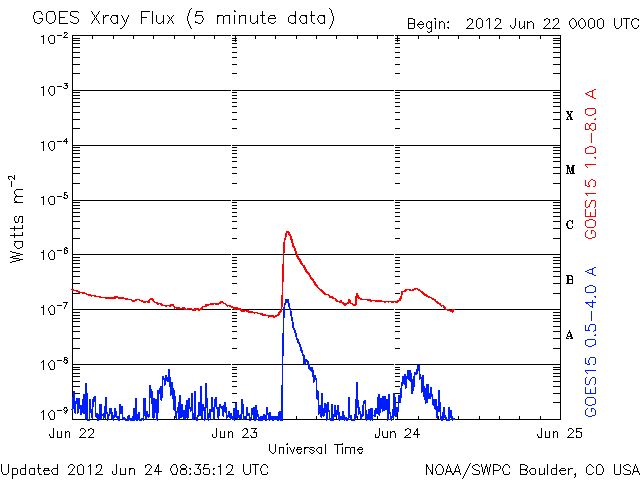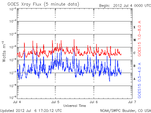 В последние дни и, особенно, часы рентгеновское излучение Солнца нестабильно: скачки составляют до 3-4 порядков. (см. график в начале этого топика - он постоянно обновляется, поддерживается в актуальном состоянии).