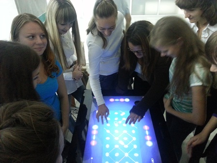 Центр космических услуг находится в одном большом зале рядом с Музеем УлГУ и зимним садом. Для димитровградцев руководитель музея провела экскурсию, и группа уже направилась к выходу. Лица девушек были настолько привлекательными и доброжелательными, что совершенно спонтанно возникло предложение показать Мультисенсорный стол. В ответ - искренний интерес.