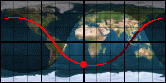 Эта карта одного из дней, когда орбита МКС перемещается в утреннюю зону Ульяновска своей самой ближней к нам частью, и значит - с самыми высокими видимыми пролётами. В нижней части карты указаны моменты и высоты кульминаций и других витков. Рассмотрим, как по этой карте для выбранного момента (07:16.5) Вы можете оценить условия наблюдения соседних пролётов. Так, более ранний - 05:40.2, - отстоит на ~1.5 часа. Значит, все линии орбиты и границ тени на карте были правее по координатной сетке на ~1.5 клетки (см. временную шкалу сверху: 1 час = 15град). Граница тени пересекала орбиту даже чуть правее Ульяновска. Это значит, что мы увидим станцию после её выхода из тени уже удаляющейся к горизонту. Следующий пролёт (08:52.7) попадает на светлое время (см. данные на карте «в южной Атлантике»: восход Солнца в 08:25).