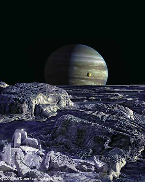 Что же мы увидим на Ганимеде и Европе? Фантазии художников на эту тему представлены на рисунках: