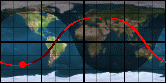 На этой карте показан пролёт (к сожалению, время неуточнённое) в середине этого периода. Все пролёты этой ночи, начиная с вечернего в 23:02 (см. рамку внизу) можно увидеть друг за другом (кроме последнего - см. "сумерки"). Всю зону сумерек орбита "проходит", не задевая тени, примерно со 2 по 7 июня (утренние часы).