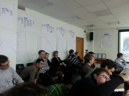 Научный семинар начался немного позже намеченного времени из-за опоздания первого докладчика, конечно, по уважительной причине. Виктор Михайлович Журавлев считает проведение научного семинара жизненно необходимым условием плодотворной научной деятельности. Поэтому усталость после трёх проведённых подряд пар перед семинаром компенсируется желанием поделиться знаниями. Вдохновение, в который раз, приходит от самой науки, строгих математических выкладок и заложенных в них многообразных возможностей после разгадки решения.