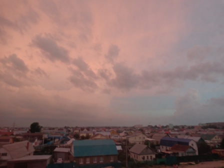 Действительно замечательные снимки! Я тоже вчера весь вечер и полночи провела у окна, наблюдая за невероятно красивым, устрашающим и моим самым любим природным феноменом – грозой. К сожалению, мой фотоаппарат не может заснять такое явление, как молнии, но я запечатлела на снимках великолепное грозовое облако на закате. Грозу, особенно сильную легко распознать! Тяжелая черная туча наползает из-за горизонта... Особенно прекрасно это явление на закате, как и было вчера. Когда с одной стороны медленно плывет темнота, а с другой еще бьётся раскаленное закатом солнце. Черные тучи начинают зловеще багроветь, вокруг становиться все темнее, но из-за еще не потухшего заката клочок, не задетого грозой, неба по-прежнему светел. И этот блеклый свет наполняет улицы каким-то необычным цветом. До тех пор, пока грозовой фронт окончательно не окутывает небеса...