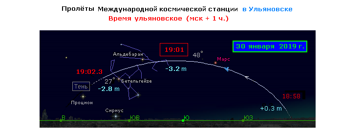 Пролёты МКС 30 января - 01 февраля 2019 года