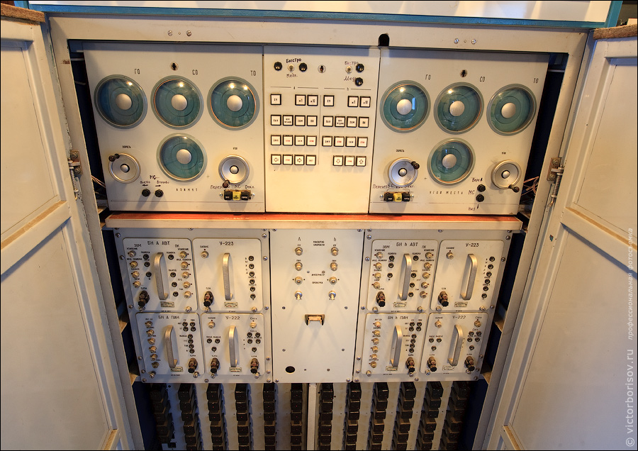 10. А это старый пульт управления положением рефлектора. Слева управление азимутом, а справа установка угла места. В данный момент не используется ввиду автоматизированной системы управления, но в случае необходимости может быть включен.