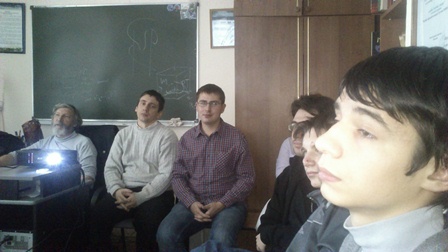 На научном семинаре, который проходил в самой Лаборатории, по плану было выступление Миронова Павла "Космические лучи". Павел сделал доклад с презентацией, в который вошла часть его диссертационной работы. Обсуждение было долгим, интересным и, надеемся, полезным для Павла.