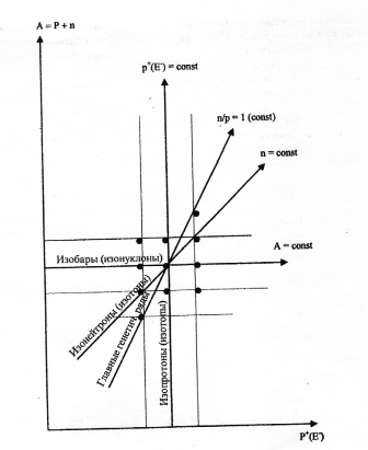 Рис.2. Фрагмент расположения стабильных изотопов в системе атомов