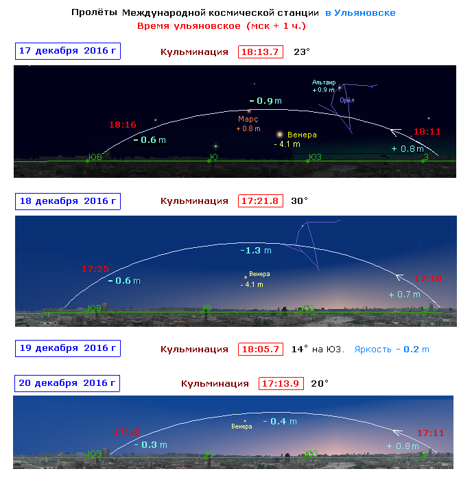 Более 10 дней погода в Ульяновске позволяет видеть вечерние пролёты Международной космической станции. Вот как могут выглядеть её завершающие пролёты.