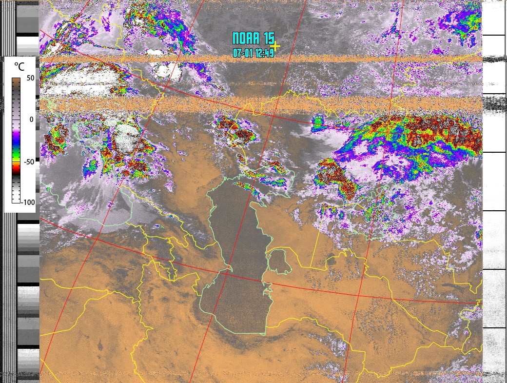 NOAA-15 Композитный снимок (NO-IR) (Температура облаков?) Юг (Выставлена в качестве эксперимента)