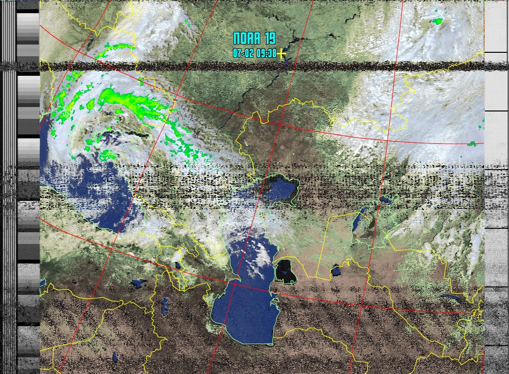 NOAA-19 Композитное изображение (HCVT with precipitation) Юг